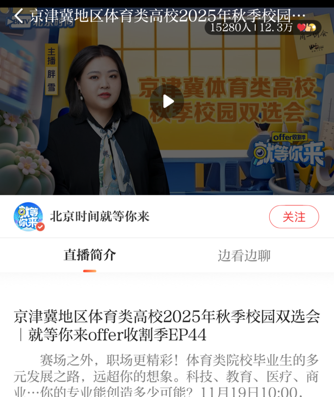 就业是民生之本,更是青年成长的关键阶梯。北京体育大学将持续深化就业服务体系改革,以更精准的岗位对接、更专业的职业指导、更创新的传播方式,助力每一位学子在体育强国建设中书写精彩职业篇章。
