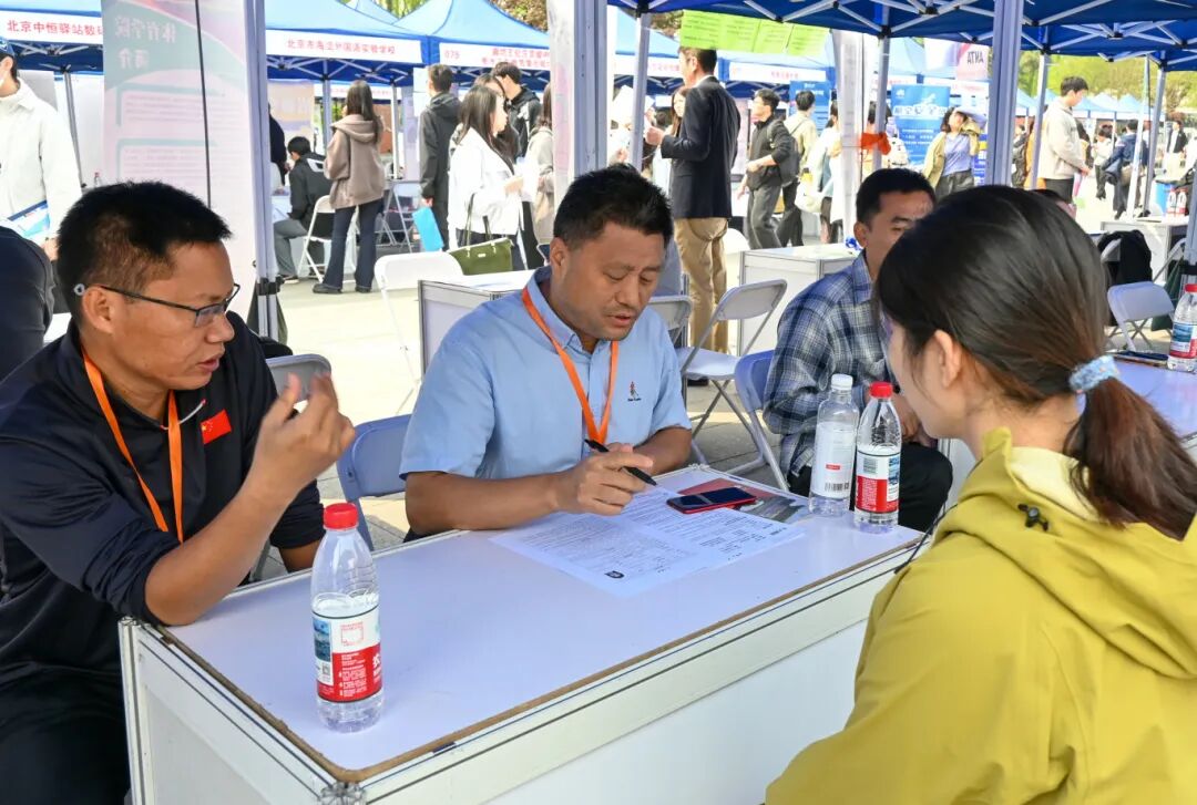 双选会现场秩序井然,氛围热烈。各展位前,招聘海报清晰醒目,招聘负责人围绕岗位核心要求、薪酬待遇、人才培养体系等问题耐心解答,吸引众多应聘学子驻足咨询、深入交流