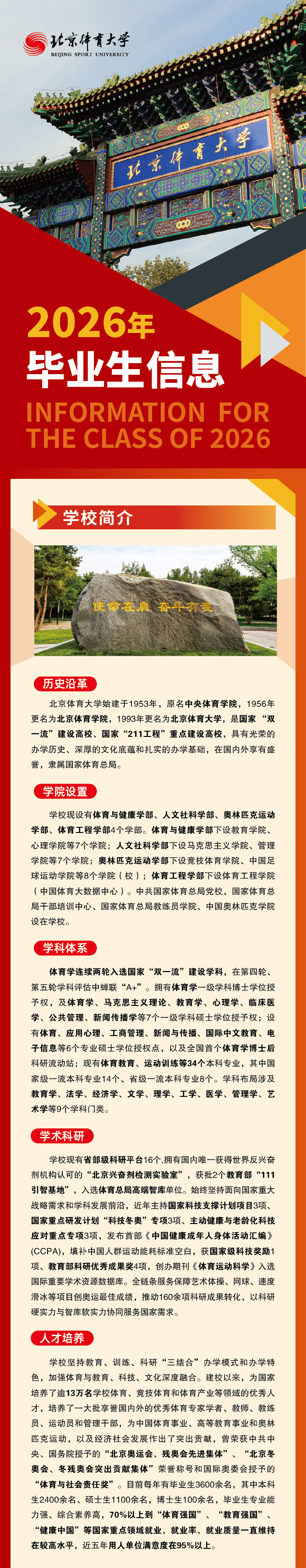 北京体育大学2026年毕业生信息及用人单位服务指南