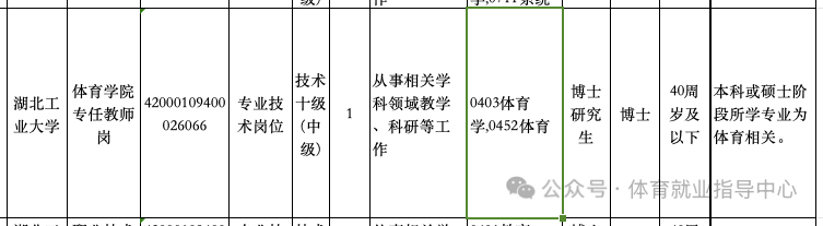 湖北工业大学招聘体育教师,有编制